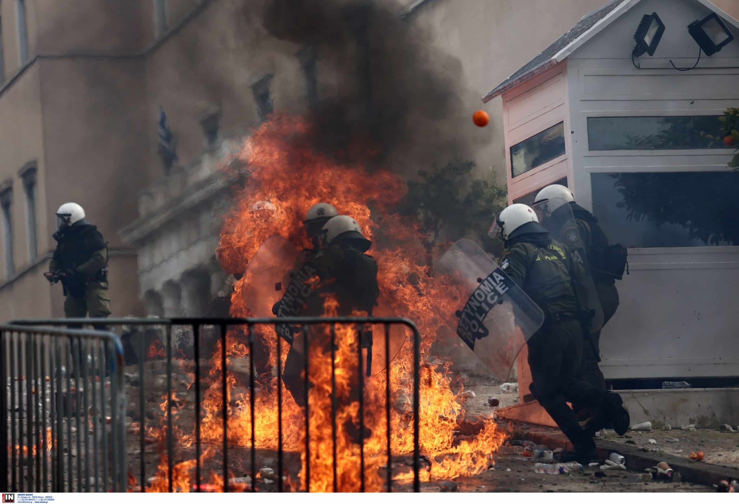 Βίαια επεισόδια μετά το συλλαλητήριο για τα Τέμπη: Μολότοφ, πέτρες και φωτιές – Έκαψαν φυλάκιο