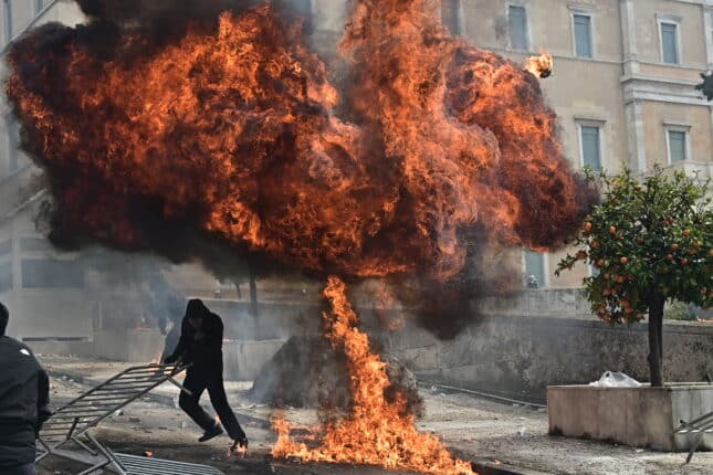 Βίαια επεισόδια μετά το συλλαλητήριο για τα Τέμπη: Μολότοφ, πέτρες και φωτιές – Έκαψαν φυλάκιο
