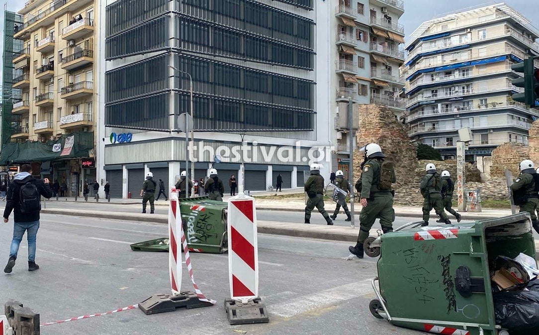 Νέα ένταση σημειώθηκε νωρίτερα στην οδό Εγνατία στο ύψος του Συντριβανίου, στη Θεσσαλονίκη.