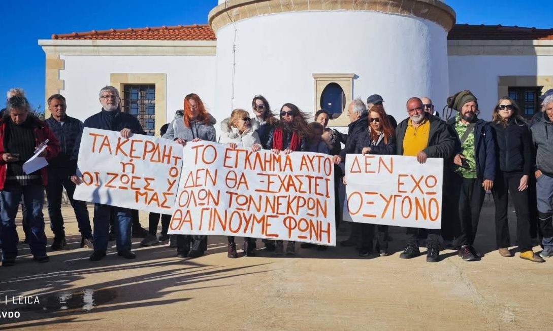 Οι κάτοικοι, σήκωσαν πανό μπροστά από τον φάρο, στέλνοντας τα δικά τους μηνύματα.