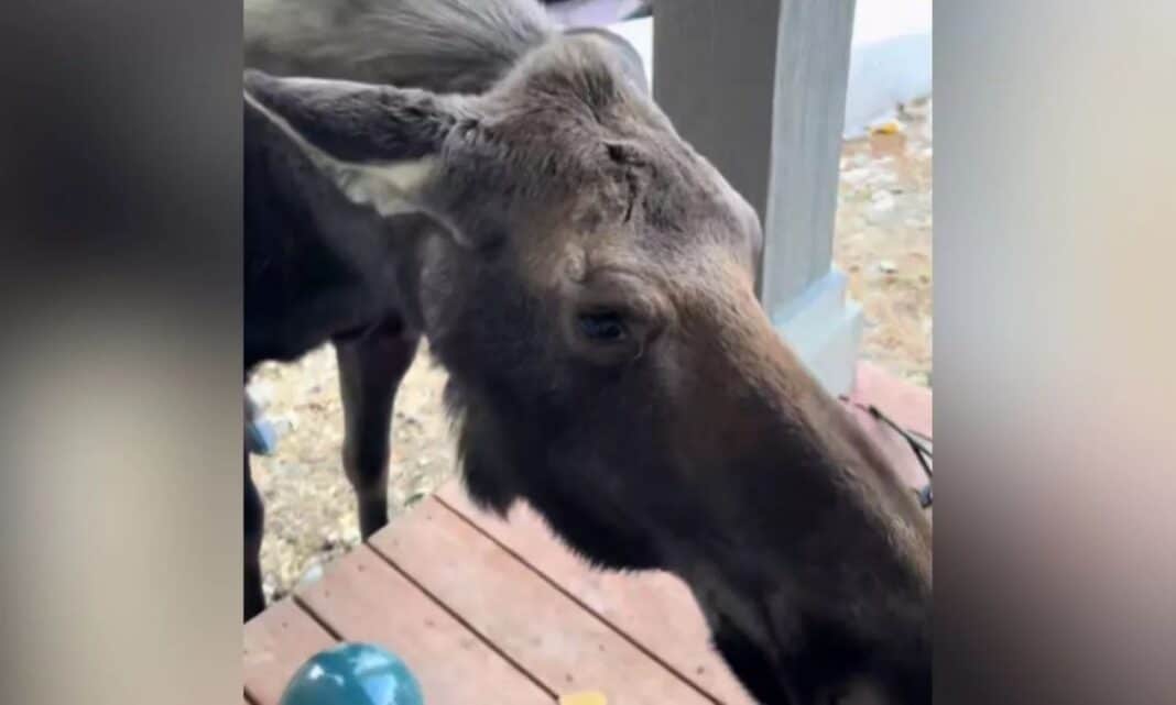 Μια γυναίκα έχει γίνει viral αφού κατέγραψε τη στιγμή που μια τεράστια άλκη έφτασε μέχρι την πόρτα της, την ώρα που μια άλλη γυναίκα παρέδιδε την παραγγελία της.