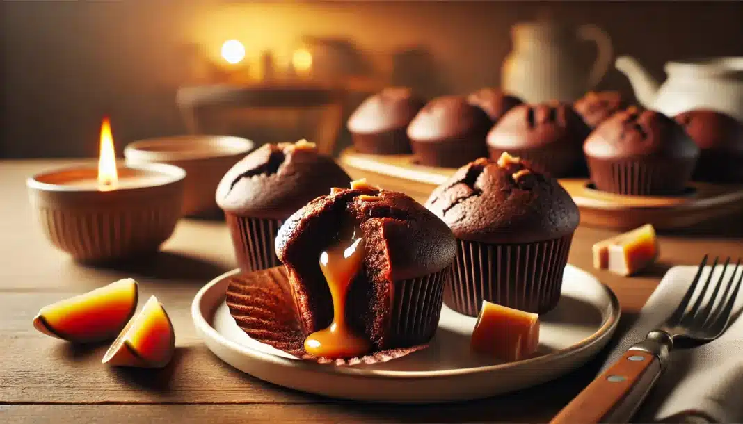 Αν λατρεύεις τη σοκολάτα και δεν μπορείς να αντισταθείς στη λαχταριστή, ρευστή καραμέλα, τότε αυτά τα muffins είναι ό,τι πρέπει για σένα! Αφράτα, πλούσια σε γεύση και με μια έκρηξη καραμέλας στο εσωτερικό τους, θα γίνουν το απόλυτο γλυκό για κάθε περίσταση. Είτε τα απολαμβάνεις με τον πρωινό σου καφέ, είτε τα μοιράζεσαι με φίλους σε ένα γλυκό διάλειμμα, ένα είναι σίγουρο – κάθε μπουκιά θα σε κάνει να θέλεις κι άλλο!