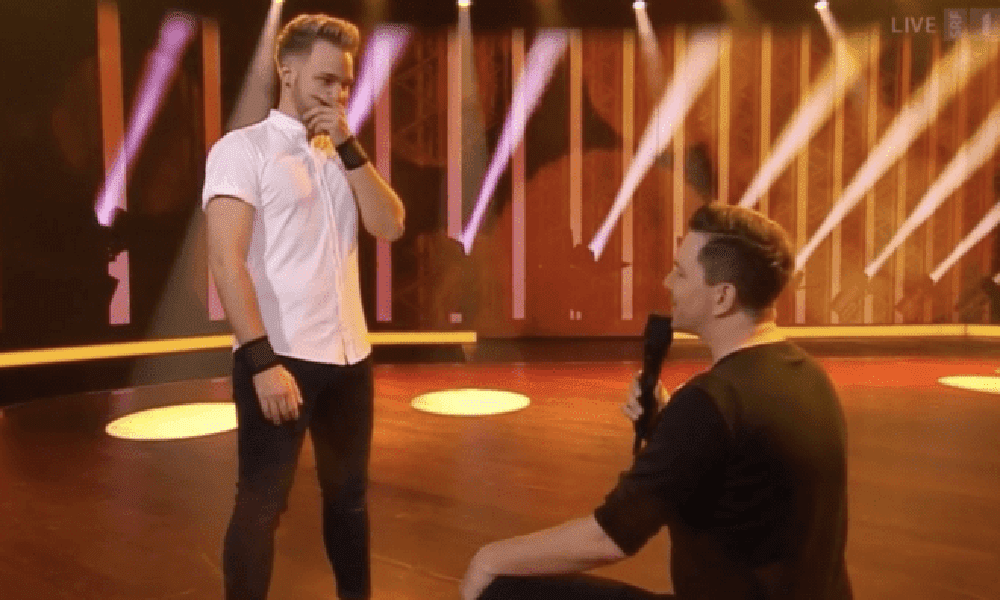 Αφού χόρεψε με τον σύντροφό του Μίκαελ Γκράμπερ, ηλικίας 26 ετών, εμφανώς συγκινημένος, γονάτισε προτού του πει: «Το αποτέλεσμα αυτής της βραδιάς δεν έχει καμία σημασία. Αυτό που μετράει, είναι με ποιον μοιράζομαι τη ζωή μου (…). Θα ήθελα πολύ να γίνω ο σύζυγός σου κι εσύ ο δικός μου».