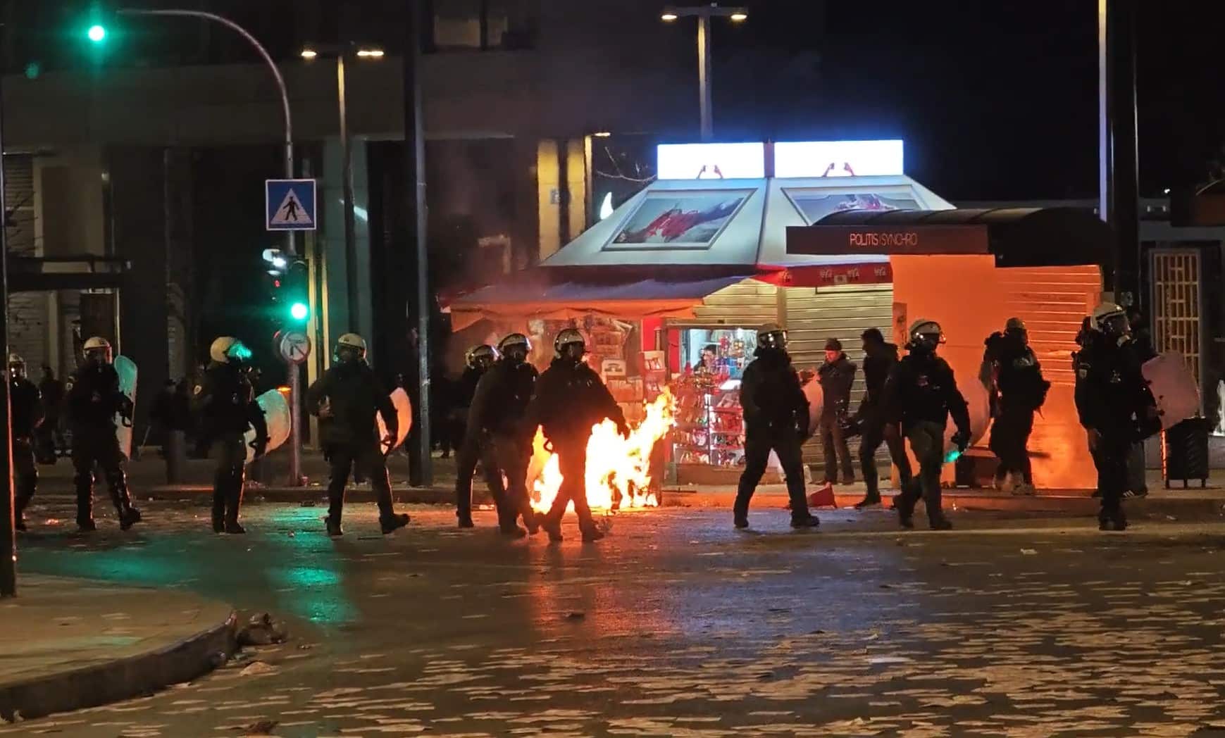 Ένταση επικράτησε την ώρα που άρχισε να αποχωρεί ο κόσμος που είχε συγκεντρωθεί για το συλλαλητήριο στη μνήμη των θυμάτων των Τεμπών στο Σύνταγμα.