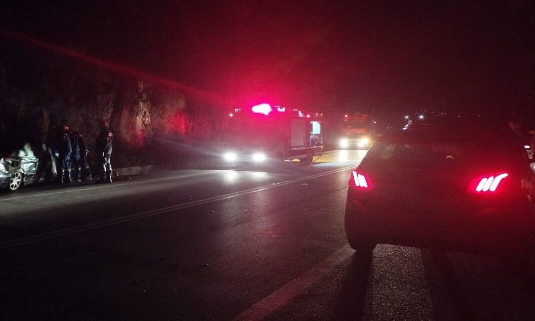 Νεκρούς τους απεγκλωβίστηκαν τρεις άνδρες από επαγγελματικό Ι.Χ. αυτοκίνητο και παραδόθηκαν στο ΕΚΑΒ.