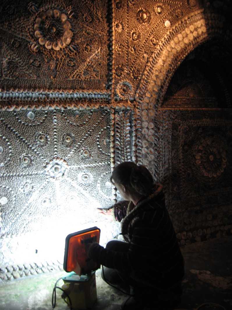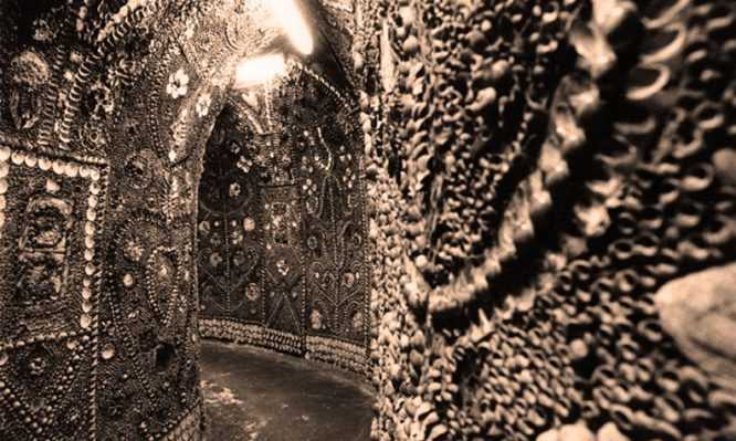Οι τοίχοι, η οροφή, το πάτωμα, καλύπτονται από όστρακα. Το πώς βρέθηκαν εκεί παραμένει ένα μυστήριο.