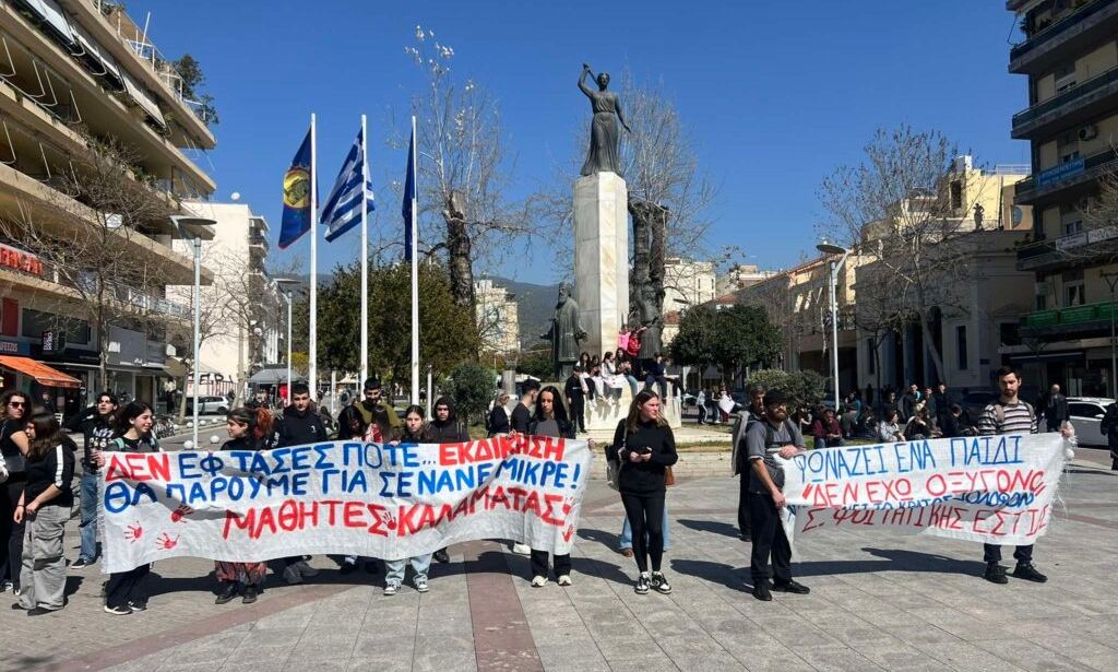 Συγκέντρωση φοιτητών για τα Τέμπη στην κεντρική πλατεία της Καλαμάτας
