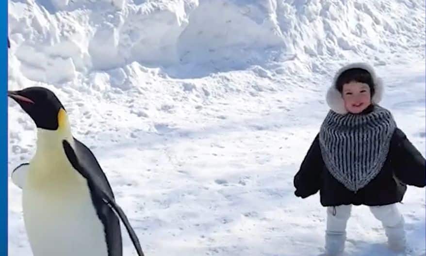 Κοριτσάκι παίζει με τους πιγκουίνους και μιμείται το βάδισμά τους – Η αντίδρασή τους