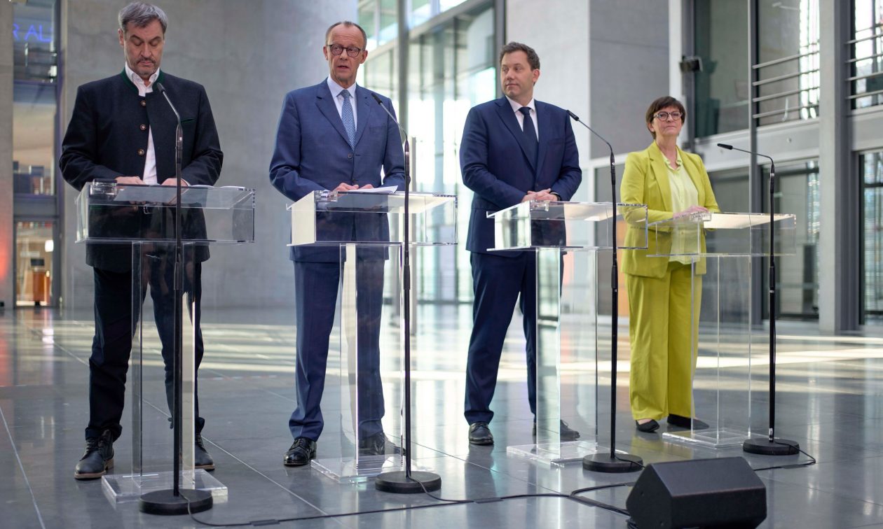 Δεδομένων των συνθηκών, οι διερευνητικές συνομιλίες ολοκληρώθηκαν ασυνήθιστα γρήγορα και οι αρχηγοί των τριών κομμάτων, ο κατά πάσα πιθανότητα επόμενος καγκελάριος Φρίντριχ Μερτς (CDU), ο Μάρκους Ζέντερ (CSU) και ο Λαρς Κλινγκμπάιλ (SPD), ανακοίνωσαν τη συμφωνία τους στα δύο βασικά ζητήματα πολιτικής, τη μετανάστευση και την οικονομία.