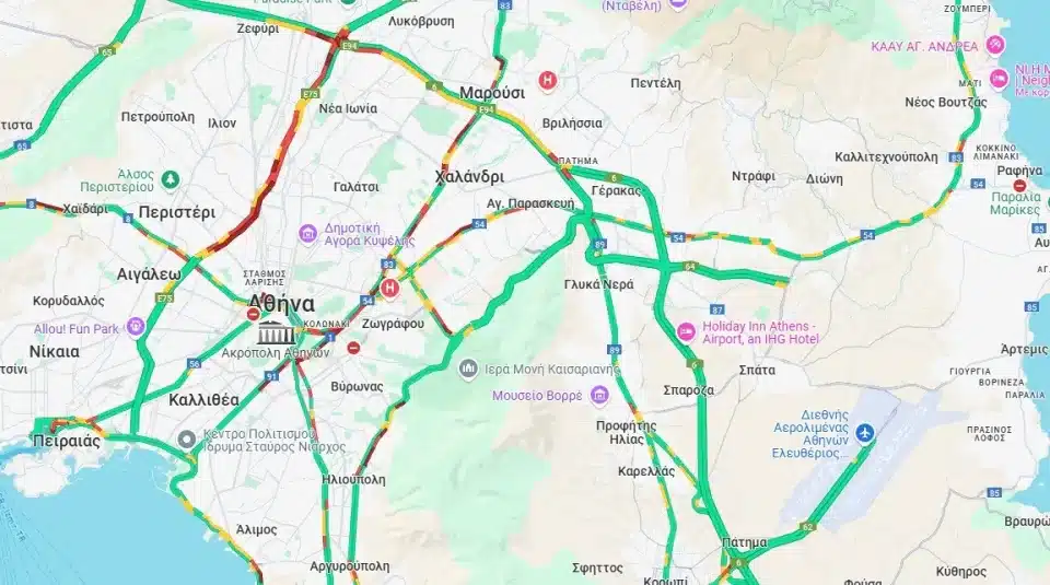 - Στην Αττική Οδό, η κίνηση είναι πιο ομαλή, με περιορισμένες καθυστερήσεις από τον κόμβο της Μεταμόρφωσης και μετά. Αντίθετα, ο δρόμος προς το Αεροδρόμιο παραμένει ελεύθερος, χωρίς σημαντικές καθυστερήσεις.