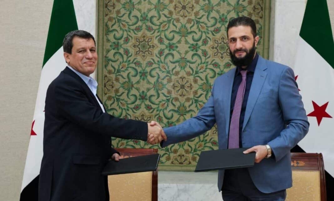 Η προεδρία της Συρίας ανακοίνωσε απόψε ότι επιτεύχθηκε συμφωνία με τον ηγέτη των Συριακών Δημοκρατικών Δυνάμεων (SDF), τον Μαζλούμ Άμπντι, προκειμένου να «ενσωματωθούν» όλοι οι πολιτικοί και στρατιωτικοί θεσμοί της αυτόνομης κουρδικής διοίκησης στο συριακό κράτος.