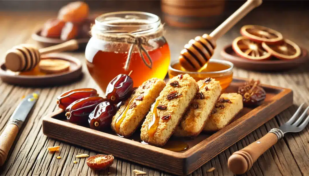 Τα παξιμάδια με μέλι και χουρμάδες είναι μια παραδοσιακή ελληνική λιχουδιά, ιδανική για πρωινό ή συνοδευτικό με καφέ. Αυτή η συνταγή συνδυάζει την τραγανή υφή του παξιμαδιού με τη φυσική γλυκύτητα του μελιού και των χουρμάδων, δημιουργώντας ένα υπέροχο σνακ γεμάτο θρεπτικά συστατικά.