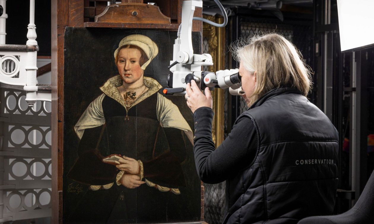 Οι ειδικοί εξέτασαν επίσης κάτω από την επιφάνεια του πίνακα και διαπίστωσαν ότι τα ρούχα του θέματος είχαν αλλάξει μετά την ολοκλήρωση του πορτρέτου. Τα μανίκια και το παλτό είχαν αλλάξει και το λευκό μαντήλι γύρω από τους ώμους της μπορεί να προστέθηκε αργότερα. Σε κάποιο σημείο, τα μάτια, το στόμα και τα αυτιά της γυναίκας είχαν σκόπιμα γρατζουνιστεί, ίσως σε μια «εικονοκλαστική επίθεση», σύμφωνα με την English Heritage.