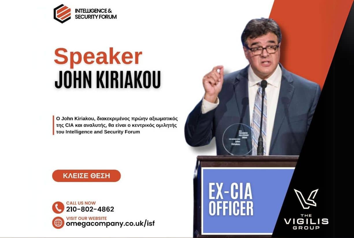 Το Intelligence and Security Forum θα φιλοξενήσει έναν σημαντικό αριθμό κορυφαίων ομιλητών από την Ελλάδα και το εξωτερικό. Ανάμεσά τους ξεχωρίζει η παρουσία του John Kiriakou, πρώην αξιωματούχου της CIA, ο οποίος έγινε παγκοσμίως γνωστός για την αποκάλυψη της χρήσης βασανιστηρίων από τις αμερικανικές υπηρεσίες πληροφοριών. Ο Kiriakou υπηρέτησε στην Κεντρική Υπηρεσία Πληροφοριών των ΗΠΑ (CIA) από το 1990 έως το 2004, διατελώντας τόσο ως αναλυτής όσο και ως επιχειρησιακός αξιωματικός. Το 2007, προκάλεσε διεθνή αίσθηση, καθώς επιβεβαίωσε τη χρήση του waterboarding από τις αμερικανικές αρχές σε κρατούμενους της Αλ Κάιντα, γεγονός που οδήγησε αργότερα στη φυλάκισή του για διαρροή διαβαθμισμένων πληροφοριών.