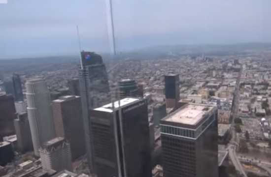 Η γυάλινη, διάφανη τσουλήθρα στον 70ο όροφο ουρανοξύστη του Λος Άντζελες δεν είναι για λιγόψυχους. Στα λίγα δευτερόλεπτα «κατάβασης» από τον 70ο στον 69ο όροφο, οι τολμηροί, μετέωροι στο κενό, μπορούν να δουν «πιάτο» τη θέα της Πόλης των Αγγέλων.