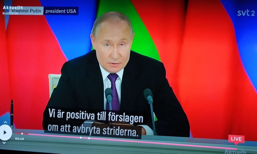 Σε μια γκάφα ολκής υπέπεσε σουηδικό τηλεοπτικό δίκτυο γράφοντας κατά λάθος τον τίτλο του προέδρου της Ρωσικής Ομοσπονδίας Βλαντιμίρ Πούτιν ως Πρόεδρο των Ηνωμένων Πολιτειών.
