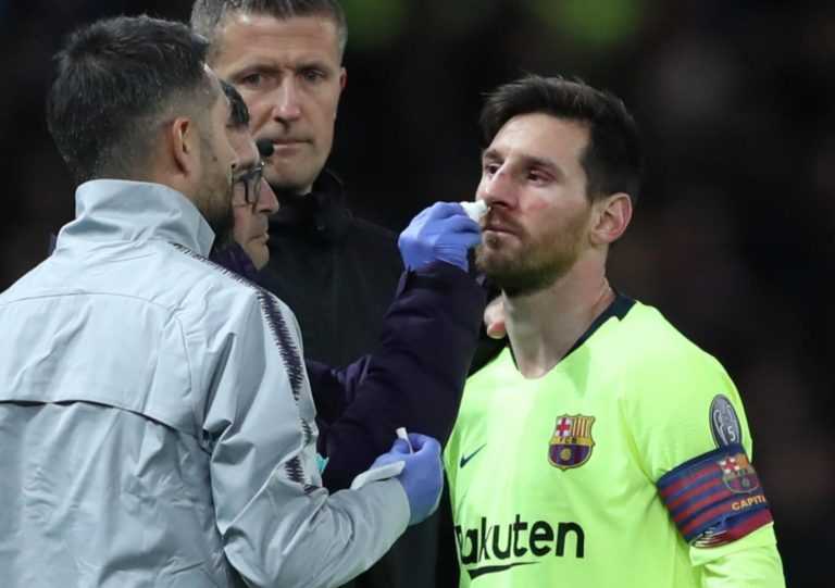Την ώρα λοιπόν που ο Λιονέλ Μέσι ήταν αιμόφυρτος (από το μαρκάρισμα του Σμόλινγκ) και κατευθυνόταν εκτός αγωνιστικού χώρου, οι οπαδοί της Μάντσεστερ Γιουνάιτεντ βρήκαν την… πουν στον άσο της Μπαρτσελόνα.