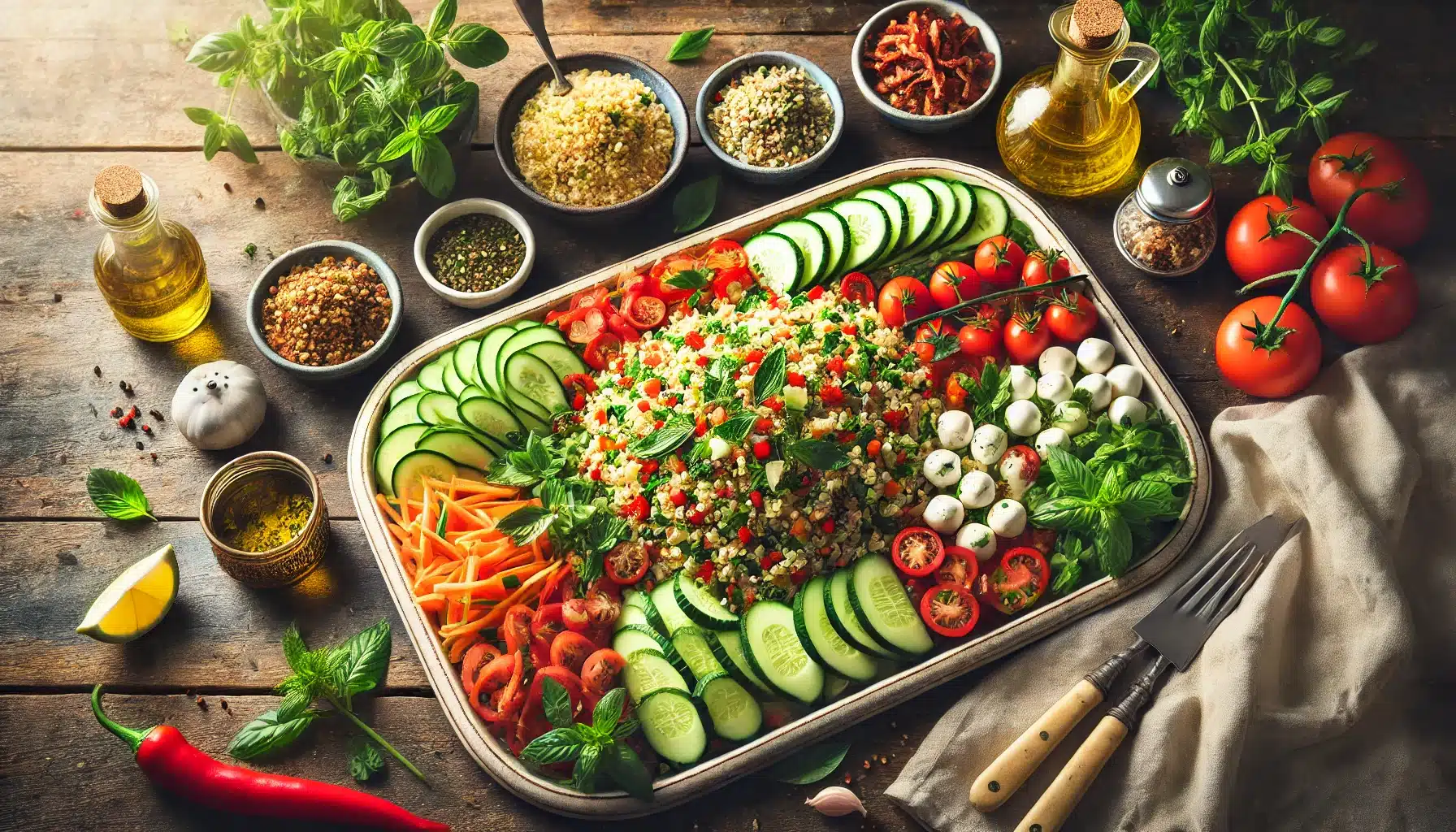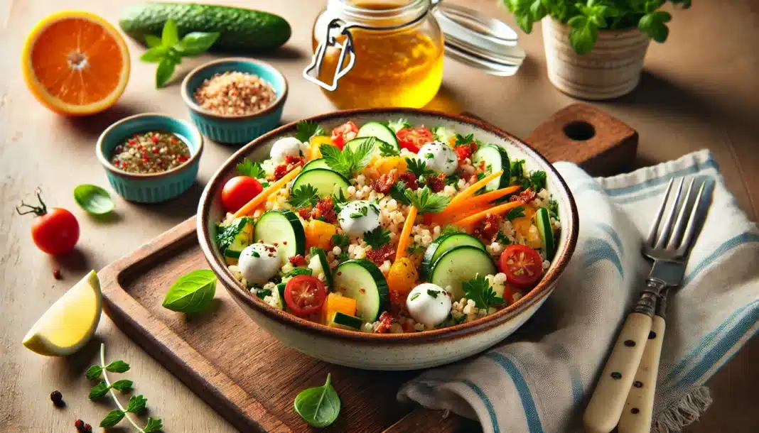 Πλιγούρι με λαχανικά, φρέσκα βότανα, μοτσαρέλα, μπέικον & βινεγκρέτ εσπεριδοειδών – Υλικά (για 4 άτομα)