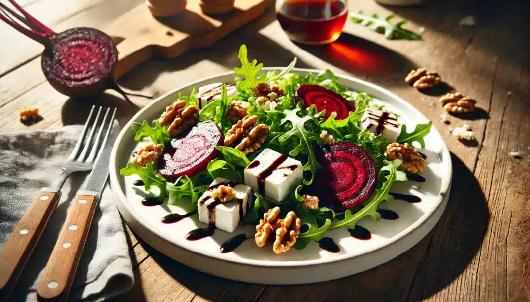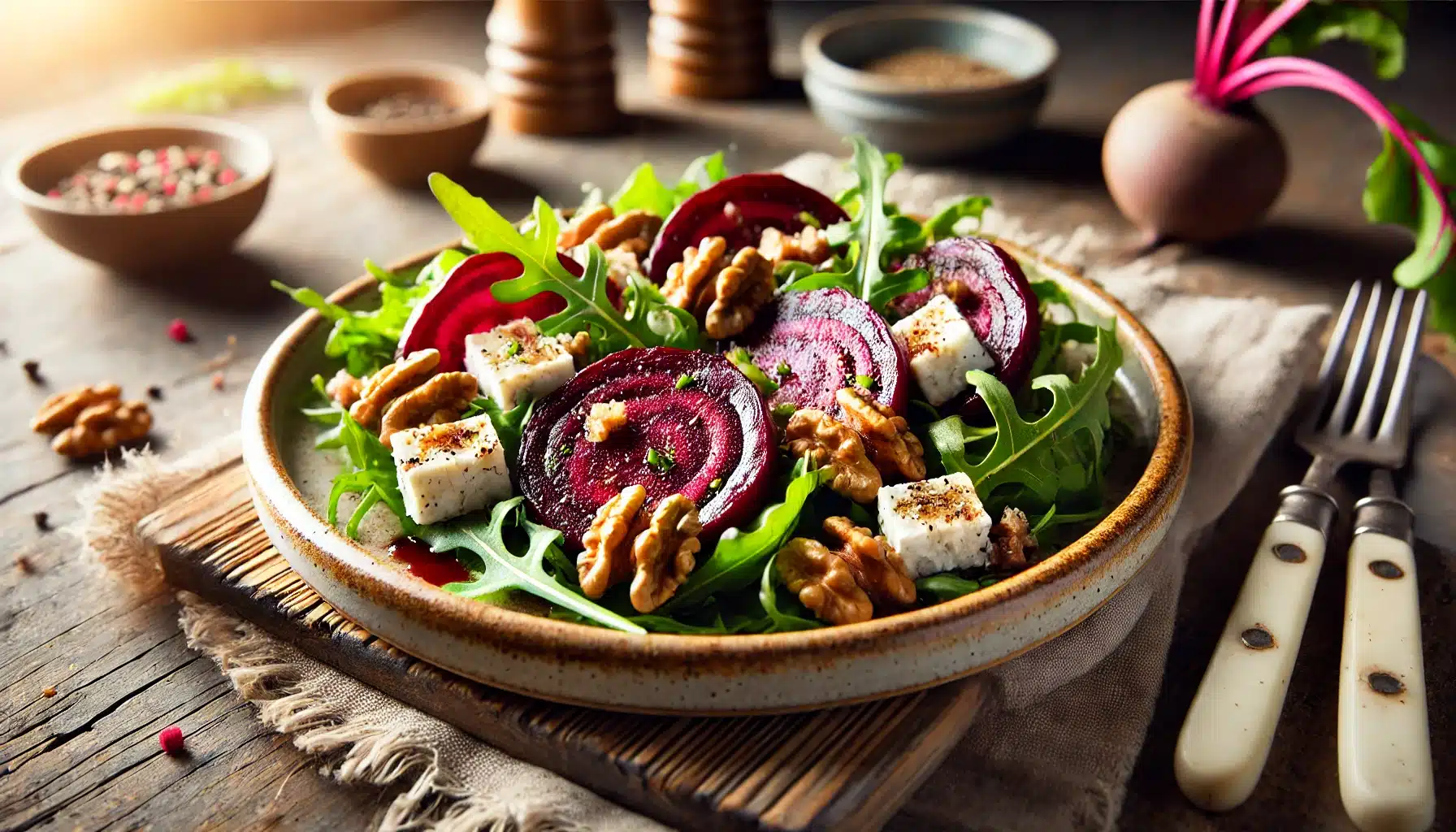 Τα παντζάρια είναι ένα από τα πιο θρεπτικά και χρωματιστά λαχανικά που μπορείς να βάλεις στο πιάτο σου. Εκτός από την πλούσια γεύση τους, προσφέρουν αντιοξειδωτικά, φυτικές ίνες και βιταμίνες. Σε αυτή τη συνταγή, τα συνδυάζουμε με κατσικίσιο τυρί και καρύδια, δημιουργώντας μια σαλάτα που εντυπωσιάζει τόσο σε εμφάνιση όσο και σε γεύση. Ιδανική για συνοδευτικό ή και ως ελαφρύ κύριο γεύμα!