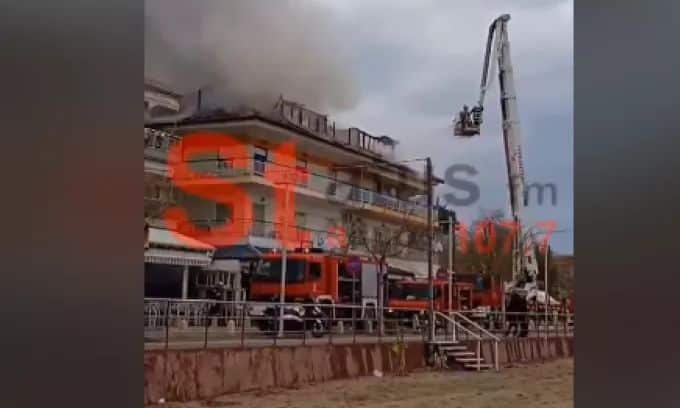 Στο σημείο έσπευσαν 15 πυροσβέστες και πέντε πυροσβεστικά οχήματα καθώς και κλιμακοφόρο όχημα.