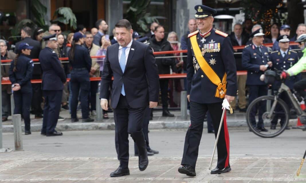 Αμέσως μετά, ο κ. Χαρδαλιάς μετέβη στην πλατεία Συντάγματος, προκειμένου να παρακολουθήσει την καθιερωμένη στρατιωτική παρέλαση, ενώ προηγήθηκε η κατάθεση στεφάνου από τον Πρόεδρο της Δημοκρατίας Κωνσταντίνο Τασούλα στο Μνημείο του Άγνωστου Στρατιώτη.