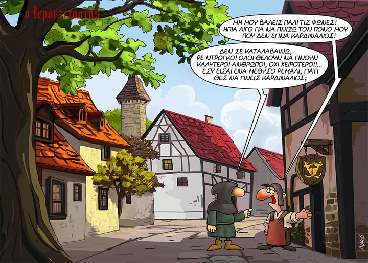 Ο αγαπημένος σκιτσογράφος Αρκάς στο σημερινό του σκίτσο μέσα από το μοναδικό του χιούμορ και την οξυδερκή ματιά του μάς χαρίζει άλλη μία στιγμή γέλιου και προβληματισμού. Στο νέο του σκίτσο, οι χαρακτήρες του αντιμετωπίζουν με… οινοπνευματική διάθεση τις προσδοκίες και τις παρεξηγήσεις της ζωής.