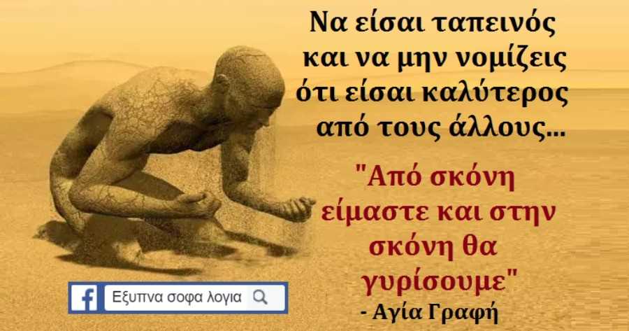 Ο καθένας μπορεί να προβληθεί και να το επιδιώξει, να ψάξει για ευκαιρίες να αναρριχηθεί. Ελάχιστοι όμως έχουν τη δύναμη να μπορούν να κατέβουν, να θυσιαστούν, να γίνουν πάτημα για να ανέβει ο αδελφός τους, ο διπλανός τους. Έτσι κάνει ο Θεός τους ανθρώπους και τους προικίζει με δύναμη ταπείνωσης και λάμψη ζωής που φαίνεται και ξεχωρίζει. Ο άνθρωπος του εγωϊσμού υποφέρει, τον τρώνε τα φίδια, ενώ ο γαλήνιος άνθρωπος της θυσίας, ο ταπεινός, είναι αυτάρκης και ευτυχισμένος.