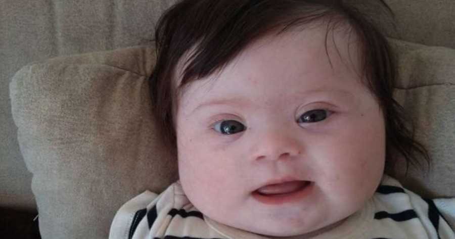 Έγραψα λοιπόν αυτό το κομμάτι και το μοιράστηκα στο Facebook. Θέλω να πιστεύω ότι αυτό θα τερματίσει το θέμα της διαφορετικότητας της κόρης μου, και ότι δεν θα χρειάζεται πια να το εξηγώ. Ξέρω πολύ καλά ότι δεν είναι αυτή η περίπτωση. Αλλά ίσως να μπορούσε να αλλάξει μερικές απόψεις πάνω στο θέμα… Αυτή είναι η κόρη μου, Λουίζα. Είναι 4 μηνών, έχει δύο χέρια, δύο πόδια, δύο τρυφερά μαγουλάκια, και ένα έξτρα χρωμόσωμα.