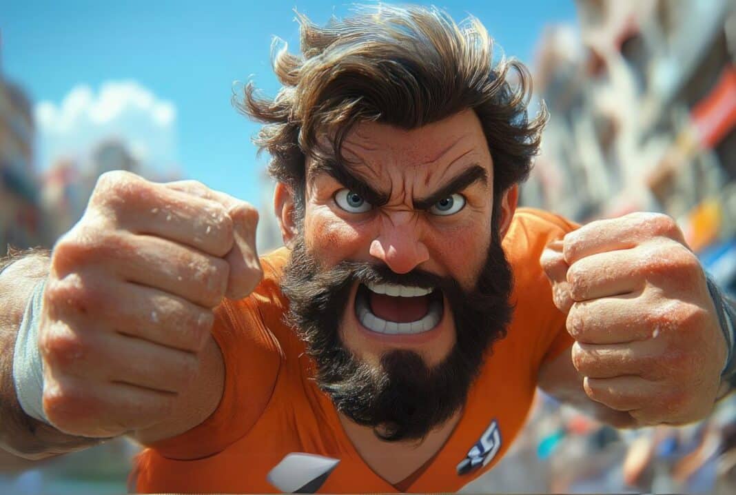 Πάει να τον κλωτσήσει του πατάει το ένα πόδι. Πάει να τον κλωτσήσει με το άλλο πόδι του το πατάει και αυτό.