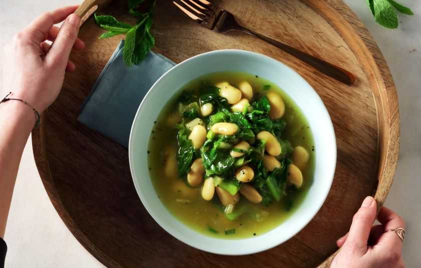 Δροσερό, ανοιξιάτικο και μυρωδάτο πιάτο. Η μαντζουράνα ταιριάζει πολύ με τους γίγαντες, αλλιώς βάζουμε δεντρολίβανο, με διαφορετικό αρωματικό αποτέλεσμα.