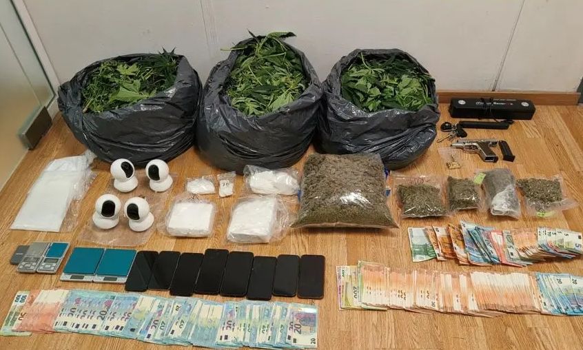Συνολικά, από τις σωματικές έρευνες, καθώς και τις έρευνες που πραγματοποιήθηκαν στο οίκημα με την καλλιέργεια, τις οικίες των συλληφθέντων, καθώς και στην ειδική κρύπτη (καβάτζα) του οχήματος, βρέθηκαν και κατασχέθηκαν:
