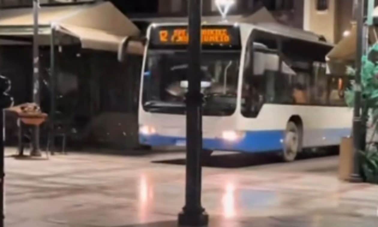 Σε βίντεο από το Tik Tok απεικονίζεται η στιγμή που αστικό λεωφορείο περνούσε μέσα από την πλατεία.