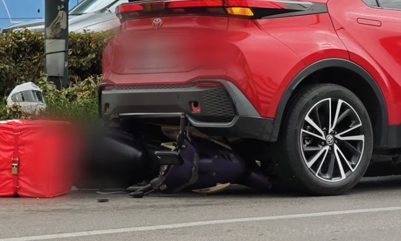 Σύμφωνα με πληροφορίες, λόγω της αυξημένης κίνησης στο σημείο και της ολισθηρότητας του δρόμου, ένας διανομέας έχασε τον έλεγχο του δικύκλου του το οποίο «καρφώθηκε» κάτω από προπορευόμενο όχημα.