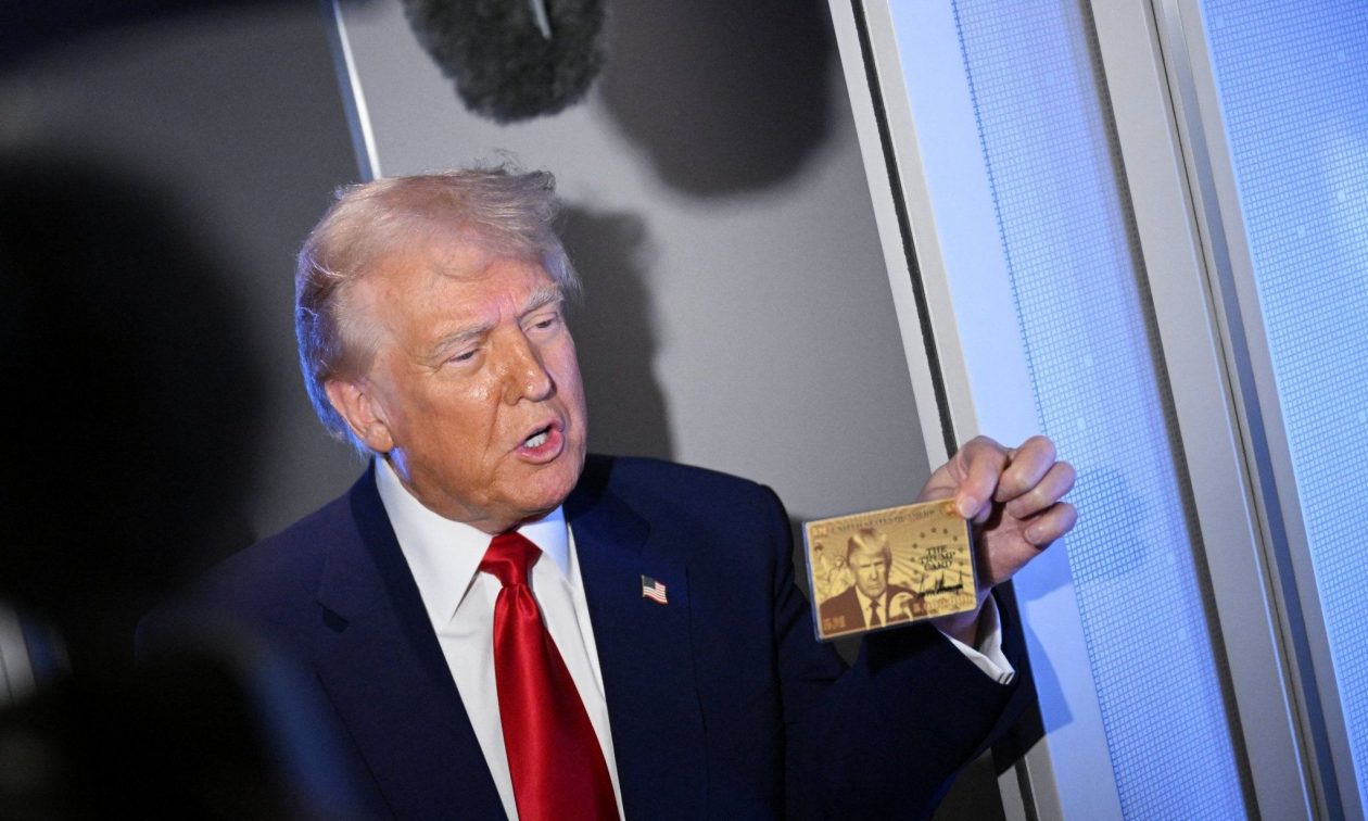 Ο Ντόναλντ Τραμπ έδειξε περήφανα στους δημοσιογράφους που επέβαιναν στο Air Force One την Πέμπτη, το σχέδιο της νέας «χρυσής κάρτας» αξίας 5 εκατομμυρίων δολαρίων.