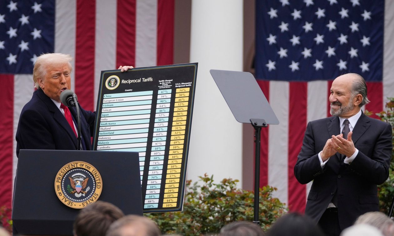 Ο ανταποκριτής του Skynews στις ΗΠΑ Mark Stone χαρακτήρισε την πινακίδα του Αμερικανού προέδρου από χαρτόνι, που δείχνει τους αμοιβαίους δασμούς, ως μια «άσκηση που αψηφά τους εμπειρογνώμονες στα Trumponomics», η οποία χαρακτηρίζεται από κάποια «πολύ αμφισβητήσιμη αριθμητική του Λευκού Οίκου».
