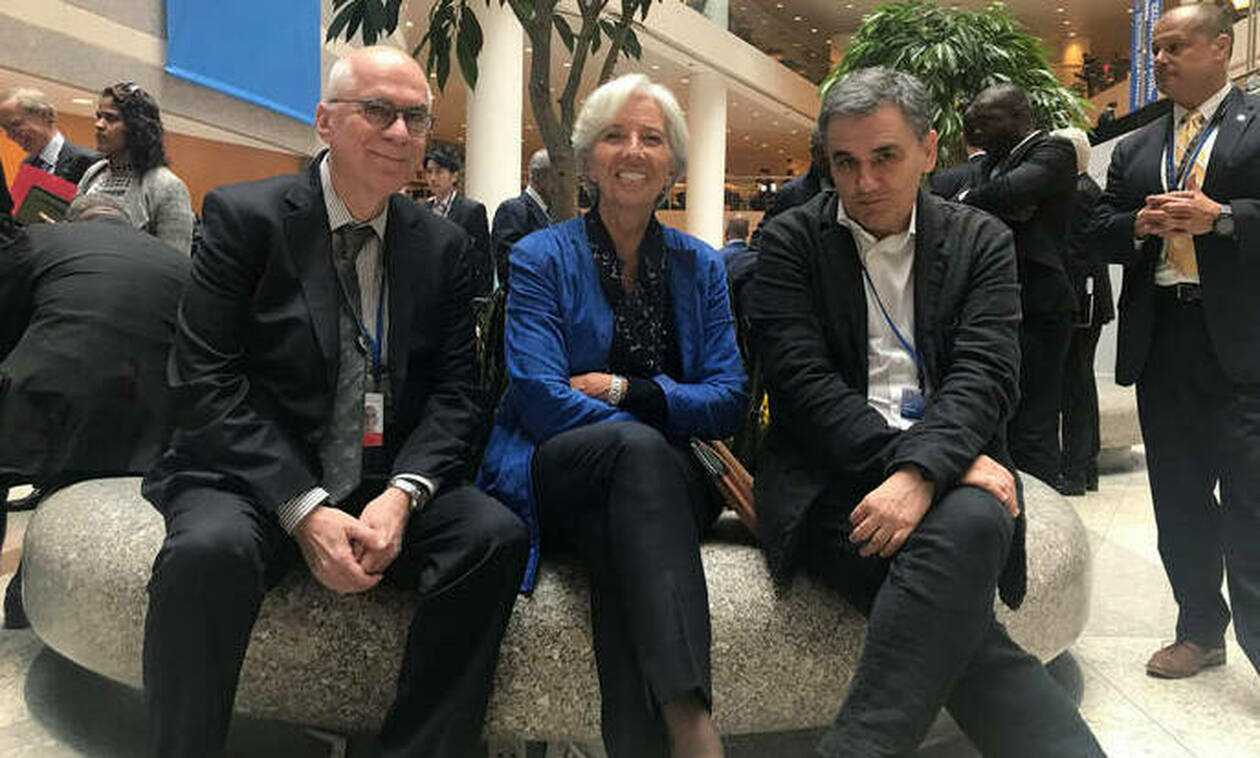 Ολοκληρώθηκε η συνάντηση του υπουργού Οικονομικών Ευκλείδη Τσακαλώτου με τη Γενική Διευθύντρια του ΔΝΤ, Κριστίν Λαγκάρντ, παρουσία του εκπροσώπου της Ελλάδος στο Ταμείο, Μιχάλη Ψαλιδόπουλου.