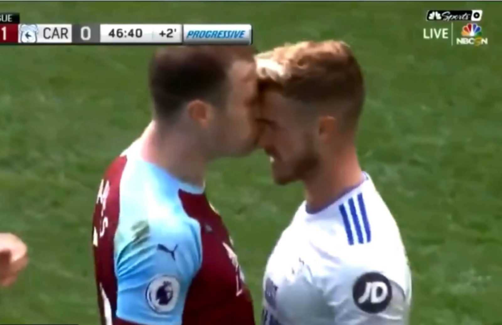 Ο παίκτης των γηπεδούχων κόλλησε κεφάλι με κεφάλι με τον αντίπαλό του και -στην προσπάθεια του να τον εκνευρίσει- τον φίλησε στη μύτη. Ο παίκτης των φιλοξενούμενων δεν έχασε την ψυχραιμία του, ενώ ο διαιτητής είδε τη φάση και τιμώρησε τον παίκτη της Μπέρνλι με κίτρινη κάρτα!