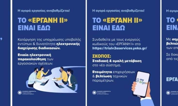 Σε δοκιμαστική λειτουργία τέθηκε από την Πέμπτη 10 Απριλίου 2025 το νέο πληροφοριακό σύστημα «ΕΡΓΑΝΗ ΙΙ» του Υπουργείου Εργασίας και Κοινωνικής Ασφάλισης.