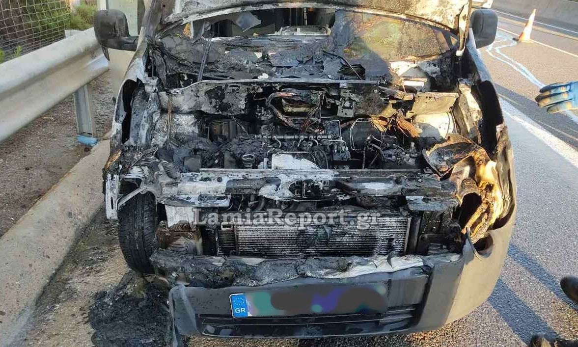 Πραγματική περιπέτεια για δύο άτομα που ταξίδευαν με βανάκι στην Αθηνών – Λαμίας στο ρεύμα προς τη Φθιωτική πρωτεύουσα, όταν λίγο πριν τον κόμβο Μαλεσίνας το όχημά του πήρε φωτιά.