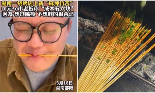 Τον περασμένο μήνα, τα κινεζικά μέσα ενημέρωσης ανέφεραν ένα ασυνήθιστο «πιάτο» που ονομάζεται «Spicy Bamboo Skewers». Δημιουργήθηκε από τον ιδιοκτήτη ενός εστιατορίου μπάρμπεκιου στο Shaoyang της επαρχίας Χουνάν. Η ασυνήθιστη λιχουδιά αποτελείται από σουβλάκια μπαμπού με ένα μείγμα μπαχαρικών, τσίλι και φρέσκα κρεμμυδάκια πριν πεταχτούν για ψήσιμο. Τα ξύλινα σουβλάκια πωλούνται στη συνέχεια σε παρτίδες των 50 για μόλις 10 γιουάν (1,40 $), καθιστώντας τα και προσιτά και νόστιμα. Σε περίπτωση που αναρωτιέστε, δεν τρώτε σουβλάκια από μπαμπού, αλλά ρουφάτε τη γεύση από αυτά ως σνακ χωρίς ενοχές.