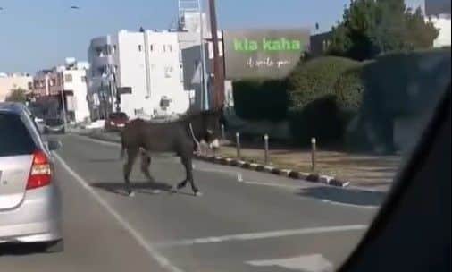 Ο λόγος για ένα γαϊδουράκι, το οποίο εντοπίστηκε να διασταυρώνει δρόμο στην περιοχή της Λακατάμιας. Το περιστατικό κατέγραψε περιαστικός σε βίντεο και αναρτήθηκε στα μέσα κοινωνικής δικτύωσης, όπου συγκέντρωσε πλήθος από αντιδράσεις.