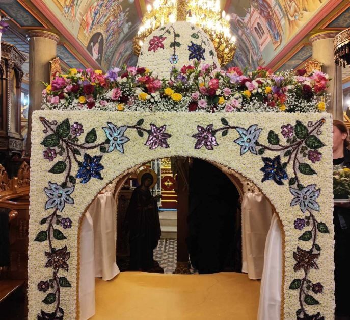 Ο στολισμός του Επιταφίου του Ιερού Ναού Αγίων Κωνσταντίνου και Ελένης δεν είναι απλώς εντυπωσιακός, αλλά ένα συλλογικό έργο τέχνης