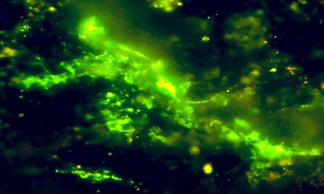 Όταν η ομάδα ανέλυσε λεπτές φέτες του πετρώματος, ανακάλυψε μικροβιακά κύτταρα πυκνά στοιβαγμένα σε μικροσκοπικές ρωγμές.