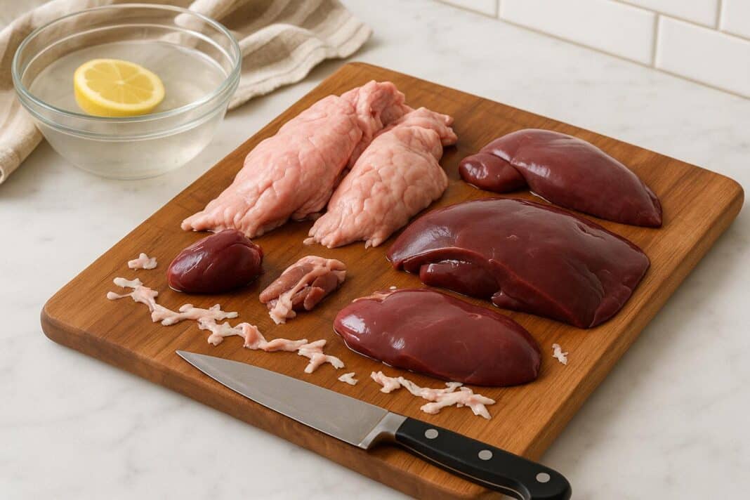 Η συκωταριά αποτελείται από πνευμόνια, καρδιά, συκώτι και σπλήνα (αν υπάρχει). Χώρισέ τα για να καθαριστούν σωστά, γιατί κάθε όργανο έχει διαφορετική υφή και ανάγκες.