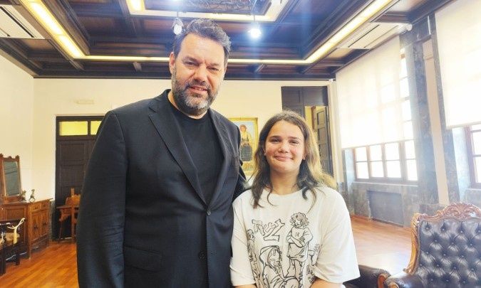 Ο δήμαρχος Ρόδου, Αλέξανδρος Κολιάδης βράβευσε τη 13χρονη μαθήτρια από την Ιαλυσό Ρόδου, Σοφία Λέση