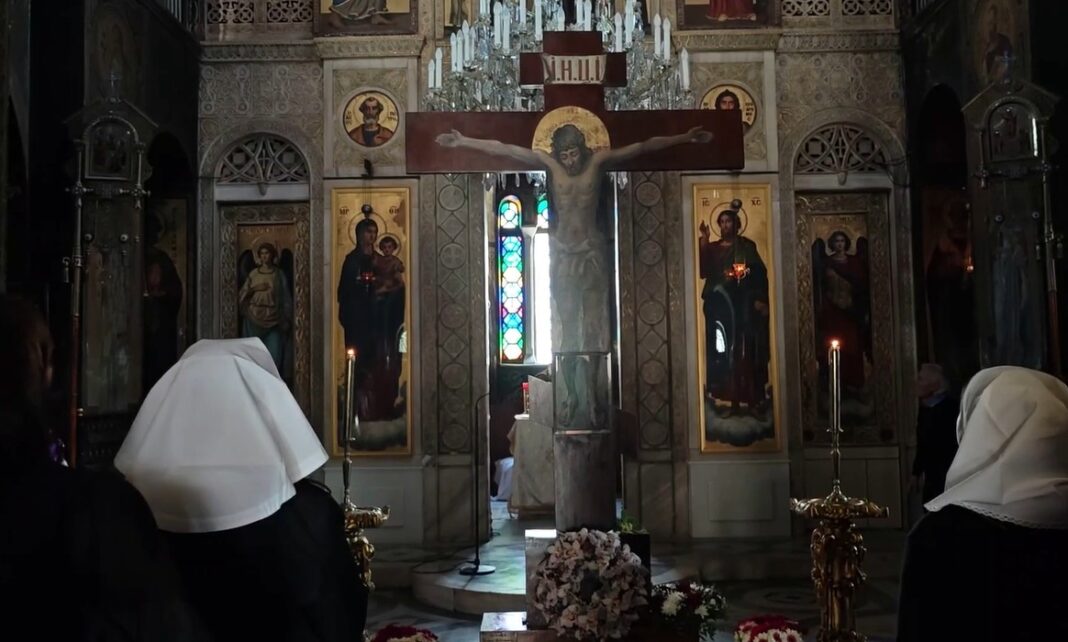 Σε κλίμα βαθιάς κατάνυξης τελέστηκε η ακολουθία της Αποκαθήλωσης, το μεσημέρι της Μεγάλης Παρασκευής, στην Αγία Τριάδα, γνωστή ως Ρωσική Ορθόδοξη εκκλησία, της Φιλελλήνων.