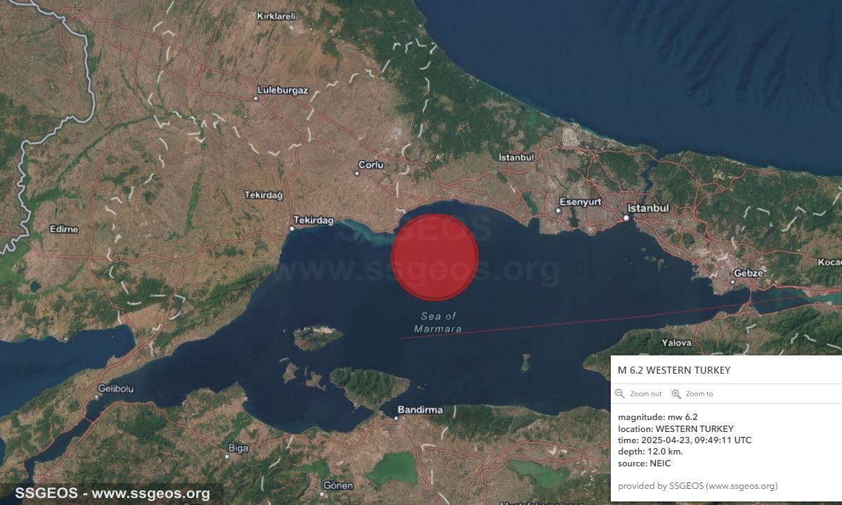 Ο σεισμός Mw 6,2 #earthquake στη Δυτική Τουρκία σημειώθηκε στη Θάλασσα #Marmara σε βάθος 12 χιλιομέτρων. Η περιοχή μπορεί να παράγει σεισμούς M 7,0 – 7,6, όπως το 1509 Ms 7,2 στα ανατολικά και το 1766 Mw 7,6 στα δυτικά αυτής της θέσης. Ο σημερινός σεισμός είναι ισχυρός και οι μετασεισμοί είναι πιθανοί.