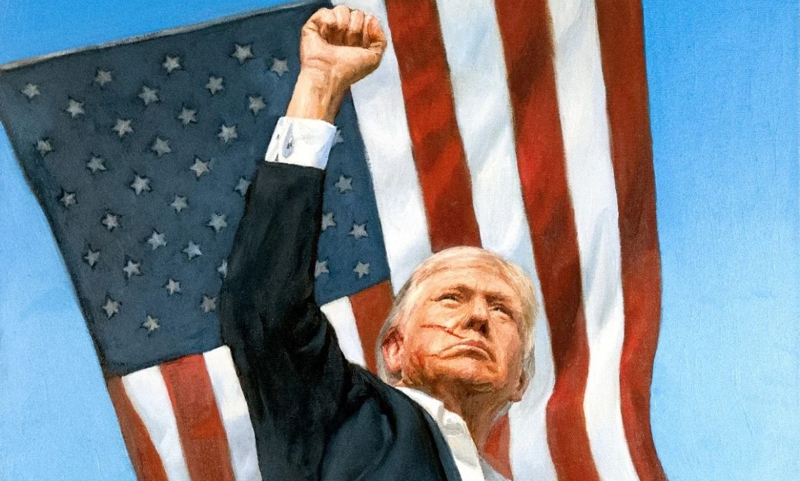 Η δραματική εικόνα του Ντόναλντ Τραμπ να υψώνει τη δεξιά γροθιά του, με το αίμα να έχει πιτσιλιστεί στο πρόσωπό του, έγινε έμβλημα δύναμης στην προεδρική του εκστρατεία.