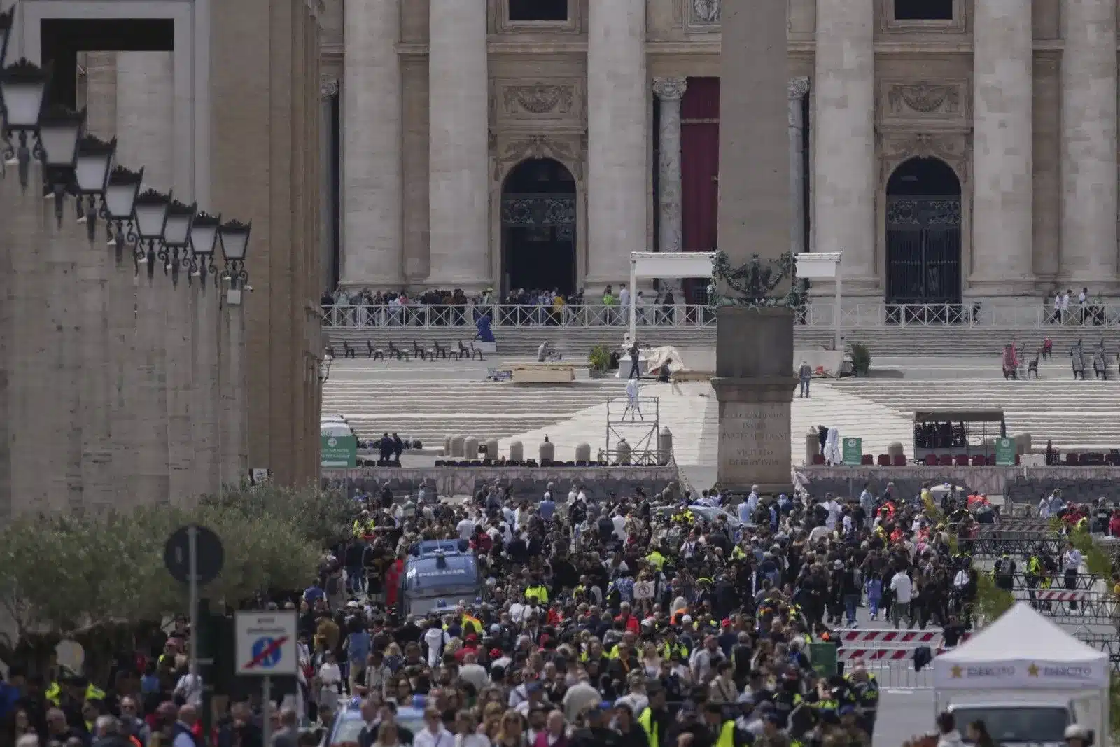 Μέχρι το βράδυ της Πέμπτης, περισσότεροι από 90.000 πενθούντες είχαν περάσει μπροστά από το ανοιχτό φέρετρο του Φραγκίσκου που ήταν τοποθετημένο μπροστά από τον κεντρικό βωμό της βασιλικής – άλλοτε προσευχόμενοι, άλλοτε κρατώντας τα smart phones ψηλά για μια φωτογραφία του εκλιπόντος ποντίφικα που ήταν ξαπλωμένος με κόκκινα ράσα, την μίτρα του επισκόπου και ένα κομποσκοίνι πλεγμένο στα χέρια του.
