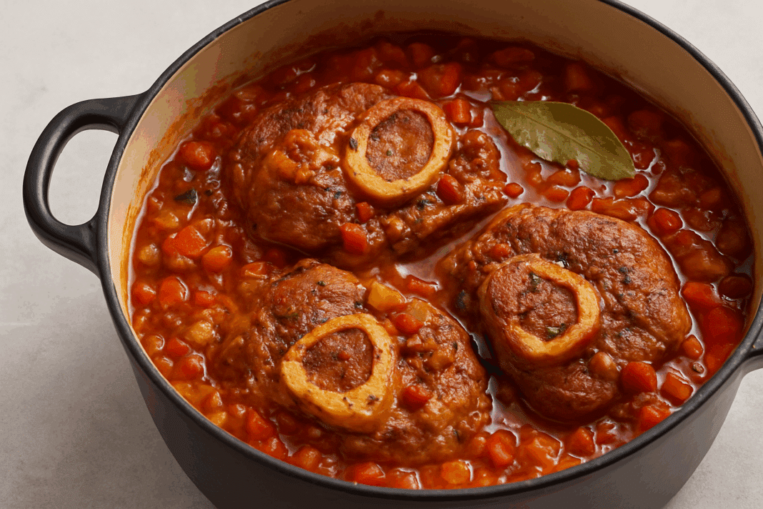 Το οσομπούκο είναι ένα παραδοσιακό ιταλικό πιάτο που προέρχεται από το Μιλάνο και παρασκευάζεται με μοσχαρίσιο κότσι μαγειρεμένο σε πλούσια σάλτσα με κρασί και λαχανικά. Εδώ προσαρμόζουμε τη συνταγή για κατσαρόλα, ώστε να απολαμβάνετε την πλούσια γεύση του ακόμα κι αν δεν έχετε γάστρα. Ιδανικό για να το συνοδεύσετε με πουρέ πατάτας ή ρύζι.